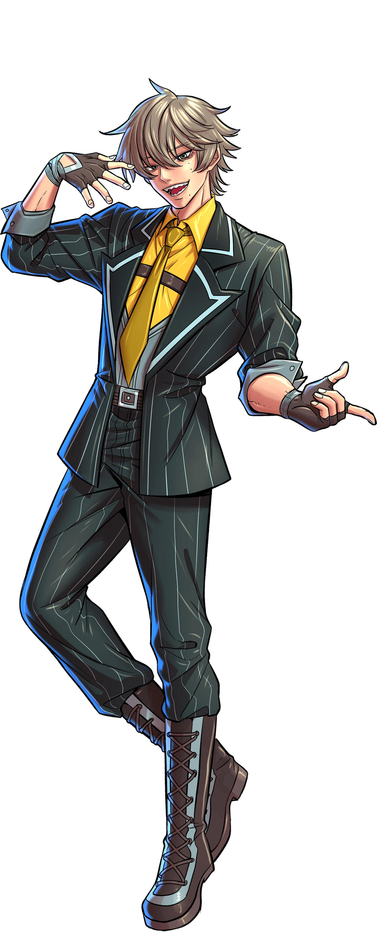 About: Akimitsu loves music above all else, and it was his biggest dream to become a famous idol one day. However, it’s his singing voice that activates his abilities, and if he gave a concert, his audience would be knocked out from overstimulation at the first tune. Only the strongest fuckers can withstand his tenor for more than a few seconds.