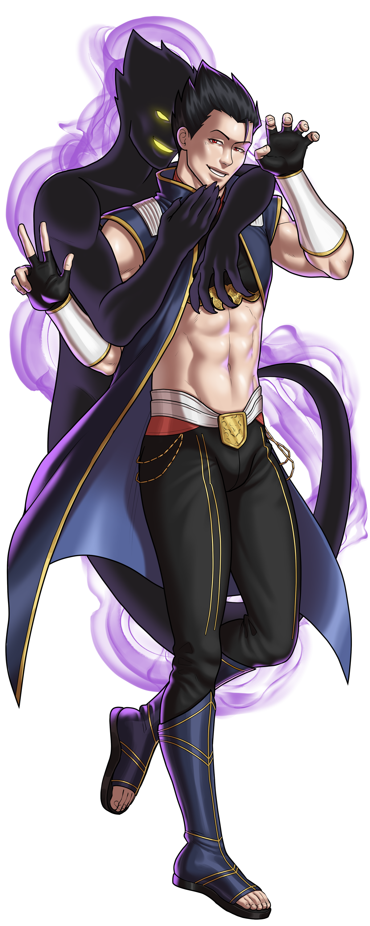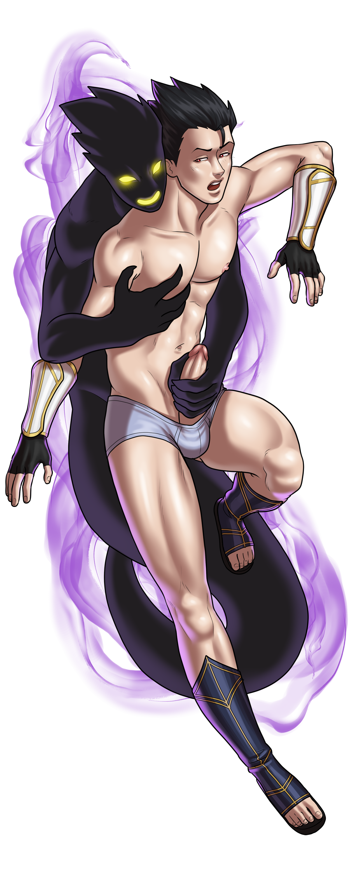 About: Karasu is a hero with the unique ability to project his shadow from his body. While Karasu is a reserved and collected individual, his shadow is wild and exhibits all his pent up sexual energies, acting upon his innermost desires. On campus, Karasu's shadow, known as Kurokage, is notorious and known for flashing others indiscriminately, sneaking into the men's locker rooms, and removing Karasu's clothing without warning. While this is embarrassing for Karasu, he can't help but feel secretly turned on by the wanton exhibitionism (which his shadow knows all too well).