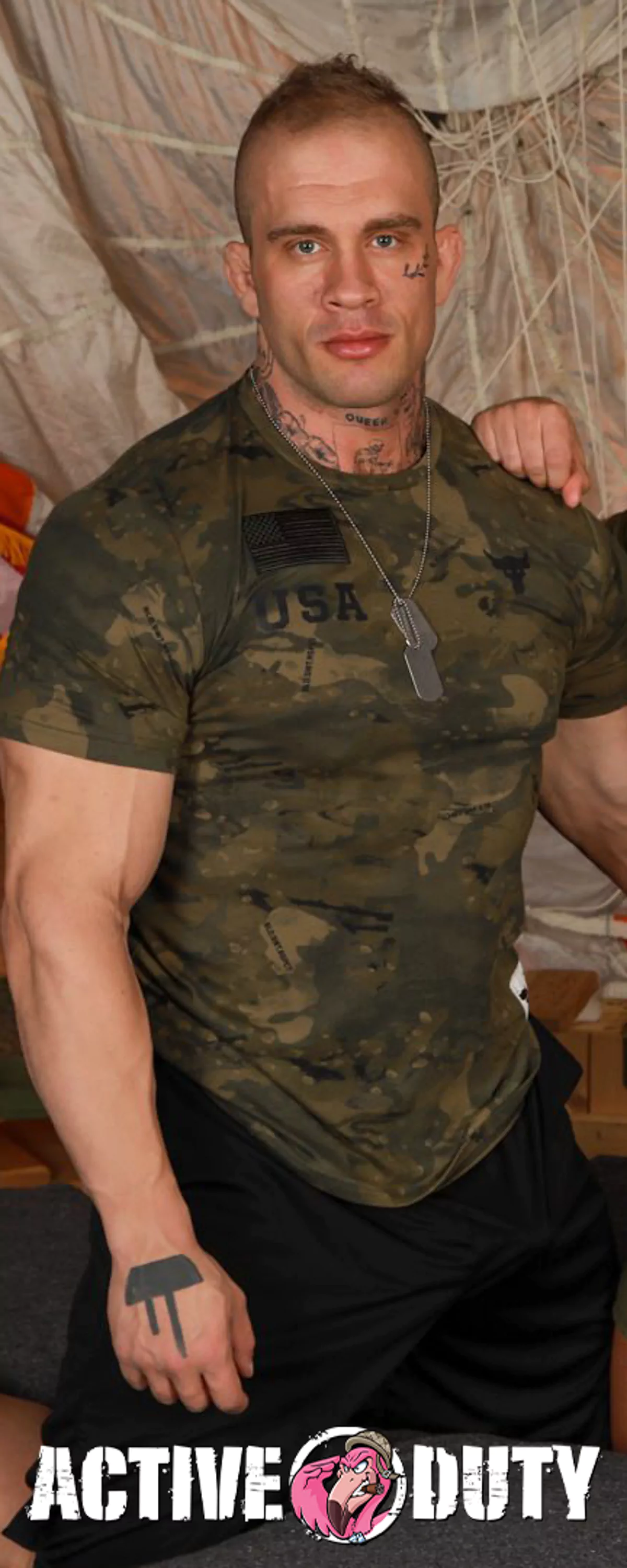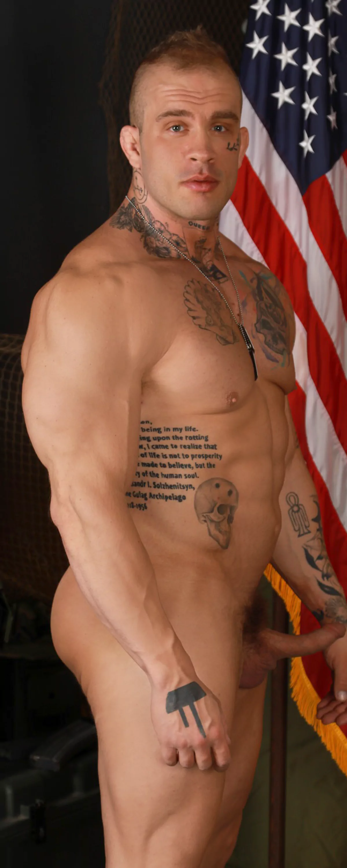 | Davin Strong's towering build can be intimidating to the faint of heart, in the best way possible. Just looking at his shirtless physique is enough to make a man weak at the knees, so wait and see what happens after he drops his pants. His military training has made him a ruthless fucker, and mixed with his dominant personality, this man is the perfect lover. | |
