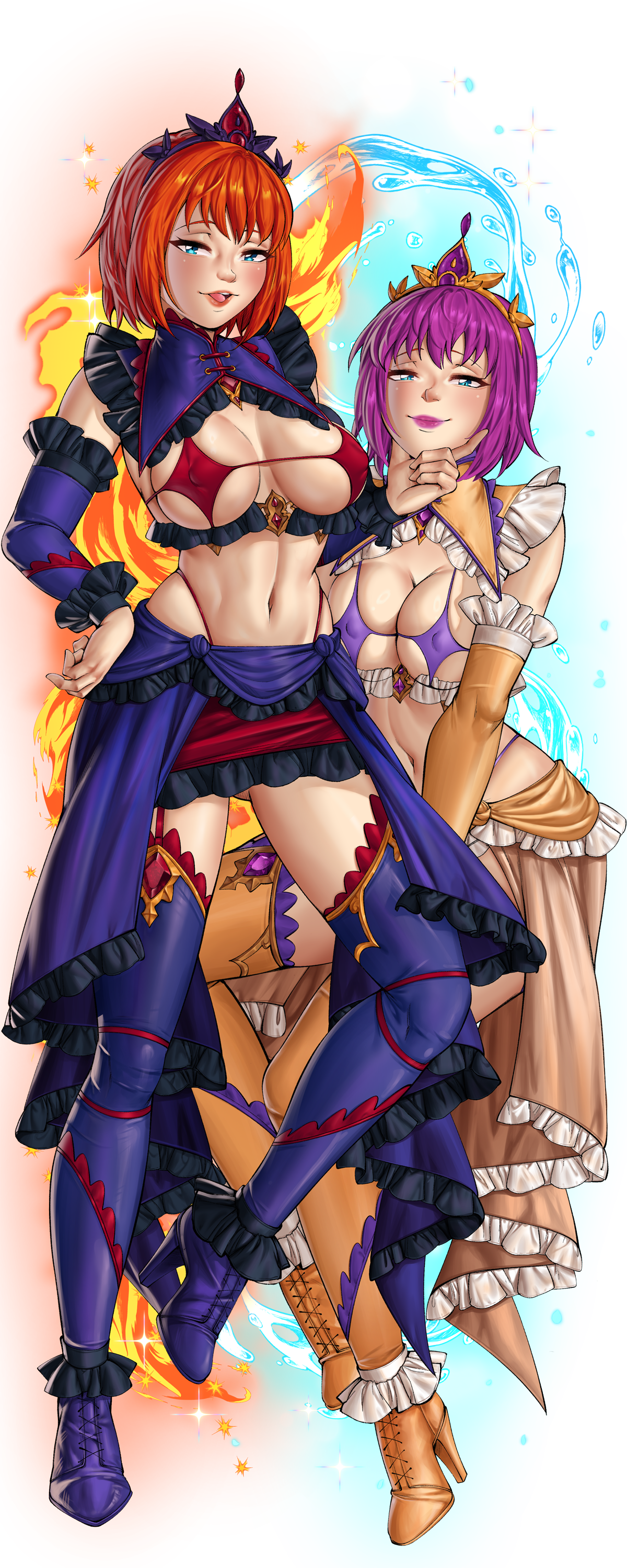 About her: Fanny (red hair) and Fione (purple hair) are two young twins that were rescued by Princess Noemy. Thankful, they go to incredible lengths to satisfy their princess and ensure her dignity remains intact. Therefore, they take care of the guests that Noemy neglects. Secretly, all the luxury surrounding them has awoken them to the desire to one day become girls of high society.