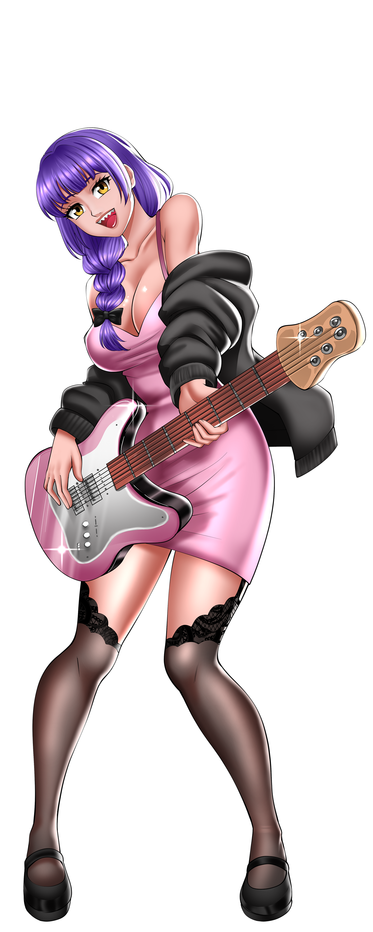 About her: Kimiko is a whirlwind of charm, chaos, and questionable life choices. Known for her effortless bass grooves and her uncanny ability to “accidentally” cause orgasms in perfect rhythm with the music, she’s both adored and feared on the local music scene. Kimiko has a special way to capture her fans' hearts, or mostly boners, with her defined body and irresistible charms; she makes fanboys go crazy!