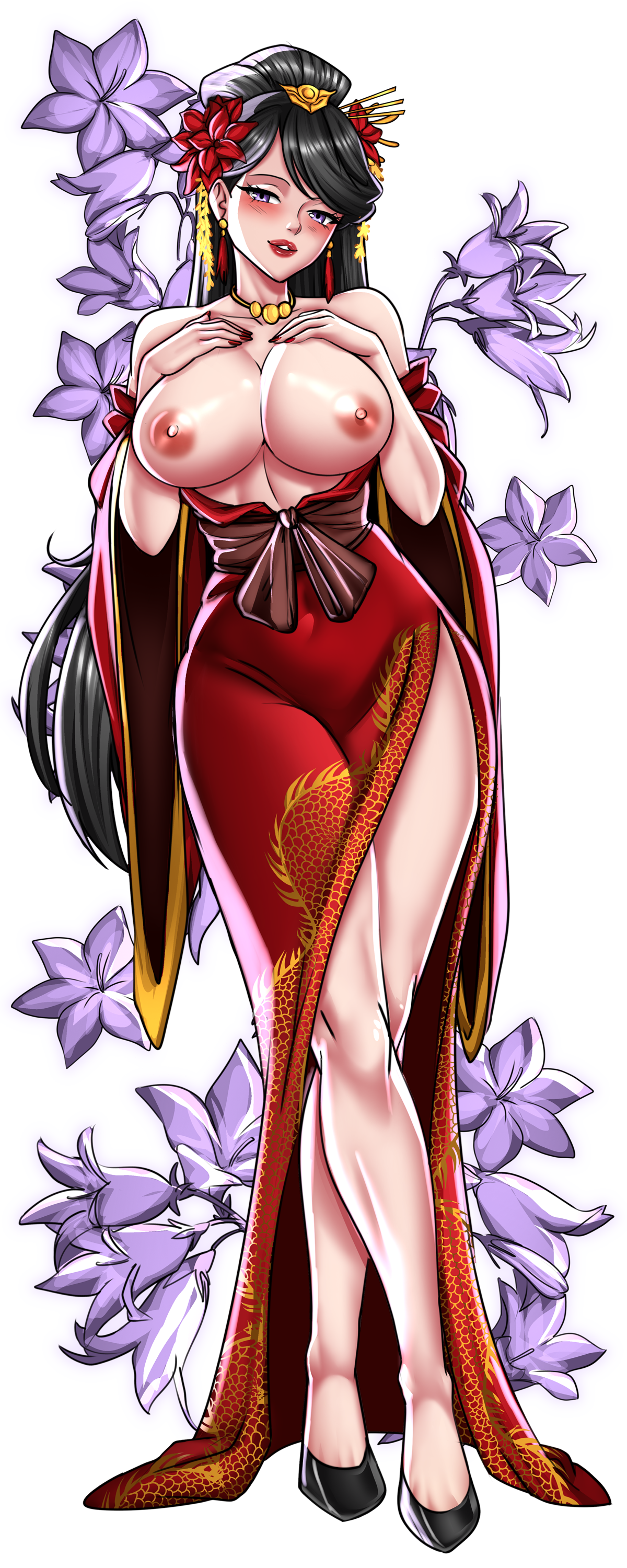 About her: Riuyu is known throughout the Inner Palace for her flawless posture, dangerous smile, and her ability to know everyone’s deepest kinks. She rose to mid-rank consort status not through favors or beauty contests, but with her great skills with her mouth and hands. With a body as hot as fire and voluptuous breasts, she is simply every man’s dream consort.